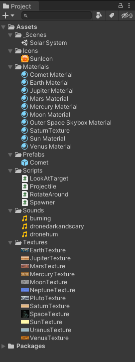 This is my Solar System project. It includes the following: