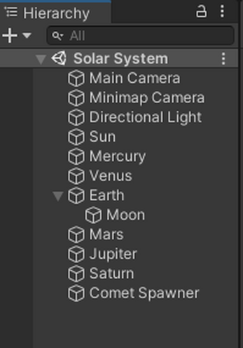 It also has the original comet spawners and the two cameras (one for the minimap and one for the perspective camera)